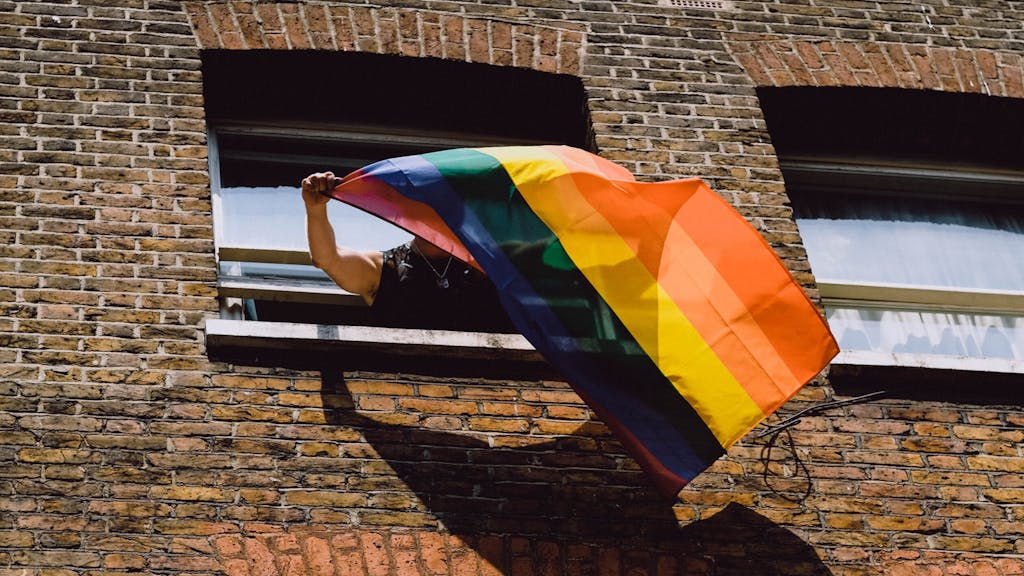 Maybe you want to hang your rainbow flag, or design a banner with a call to action in support of the LGBTQ+ community. Try different forms of art and display for everyone to see.